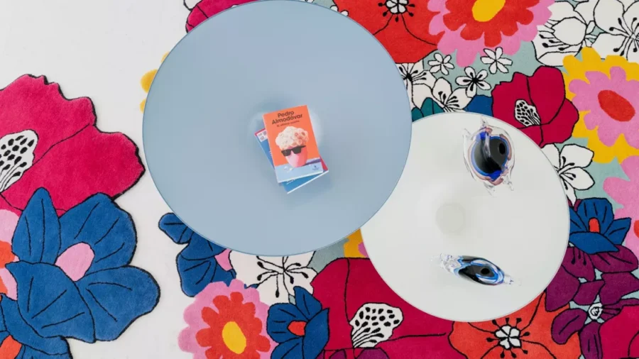 At the heart of this selection is Cromática, Pedro Almodóvar’s vibrant collaboration with Roche Bobois. The cushion, like the filmmaker’s iconic cinematic world, is a small burst of chromatic storytelling – reds that feel like passion, blues that linger with depth, colours that tilt just so into memory. The rug carries that same narrative at a grander scale, hand-tufted in 100% New Zealand wool and bordered along the curve of its floral motif. Each piece feels alive with Almodóvar’s unmistakable language, where settings become characters and colour conveys emotion long before words ever do.