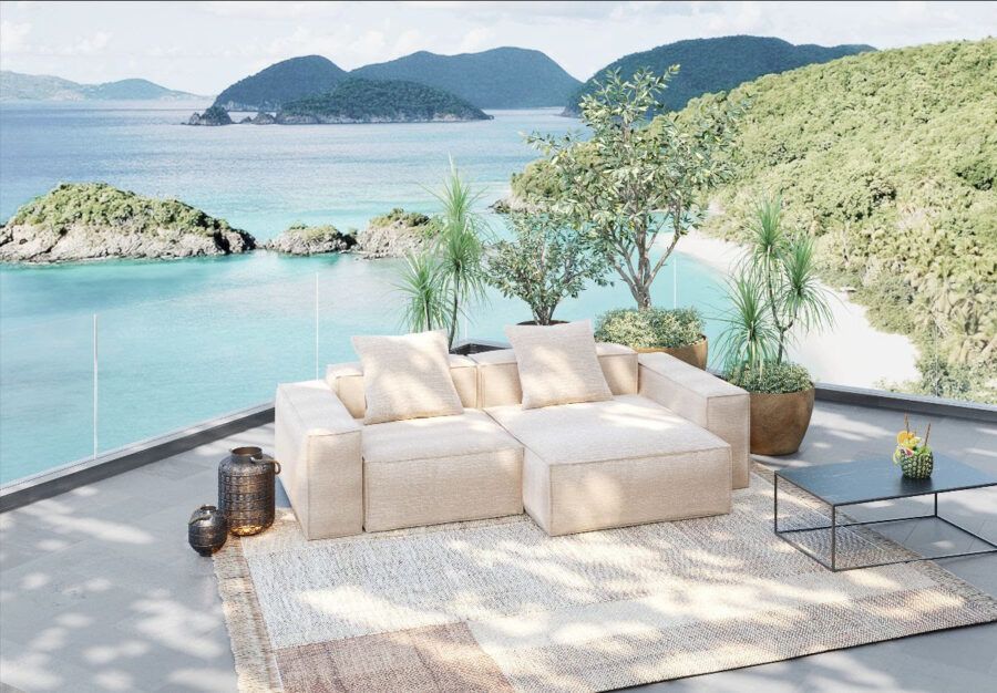 The new sofas are not only designed for outdoor use, but are also suitable for indoors. This is made possible by the well thought-out choice of materials: A waterproof membrane protects against rain, while the quick-drying fabrics are ready for use again after just 30 minutes. Thanks to the interchangeable covers in 30 different colours and patterns, customers can flexibly adapt their look – depending on the season or style preference.