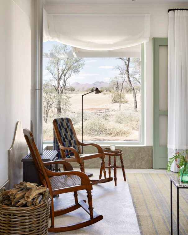 Nooishof doesn’t chase grand architectural gestures. Its elegance lies in restraint and respect — for climate, for landscape, and for the rhythms of slow living. Shaded verandas and deep stoeps create passive comfort; the orientation and siting of suites maximize panoramic views while mitigating harsh desert sun. The architecture’s restrained footprint ensures a minimal visual impact on the fragile ecosystem. It allows nature itself to take centre stage.