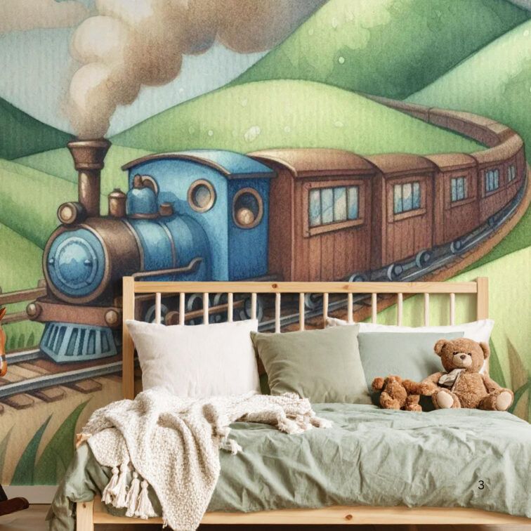 Transport-themed wallpaper continues to be a top choice for boys’ rooms — and it’s easy to see why. Vintage airplanes, classic trains, and old-style cars create a playful look that still feels calm and easy to style.