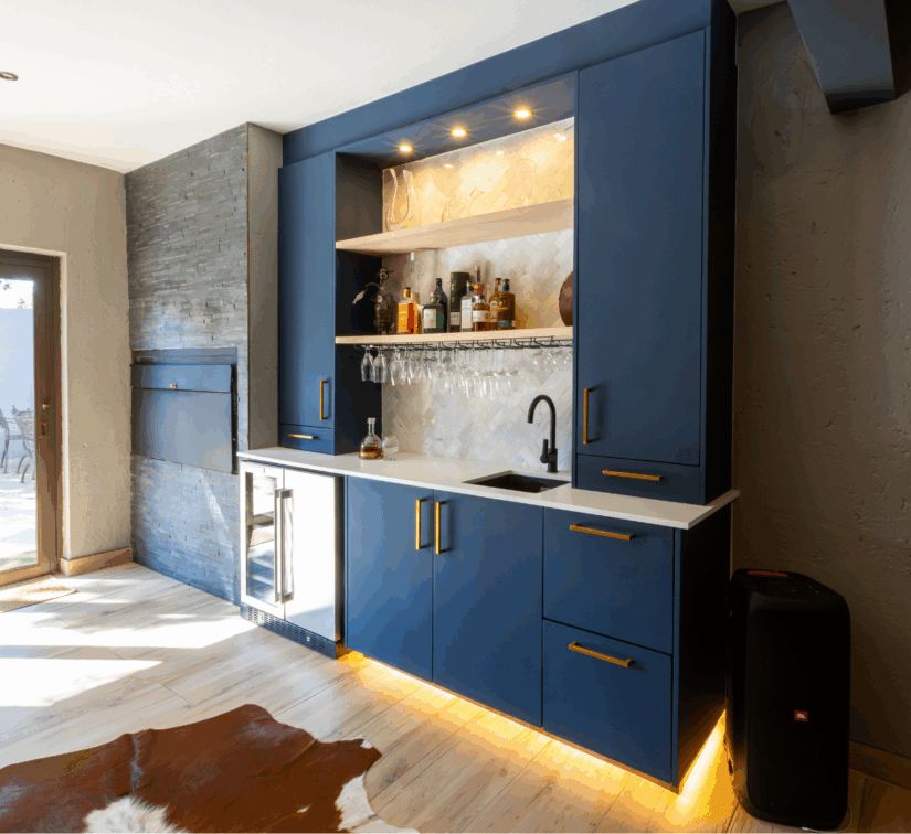 Bold colours work best when balanced with neutral tones. Pairing rich colours with whites, greys, or wood textures ensures your kitchen doesn’t feel too busy or closed in. A bold navy island against soft white cabinetry or colourful bar stools at a sleek black counter creates eye-catching contrast and visual interest.