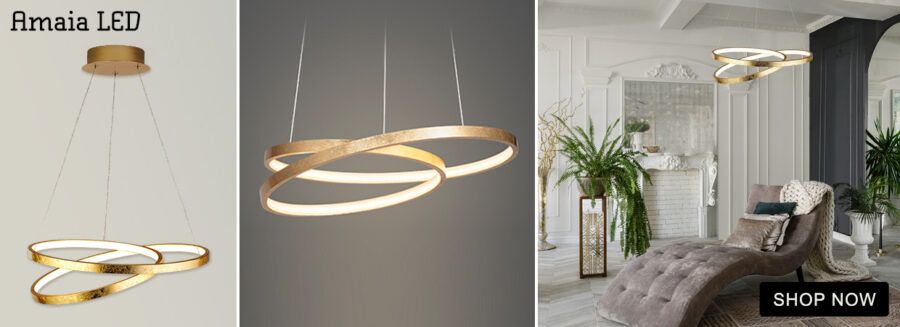 The AMAIA LED pendant is a stunning fusion of artistry and functionality. Its luxurious gold exterior exudes sophistication, while the interior rim of each ring radiates a warm and inviting glow. The distinctive double-ring design adds a touch of modern elegance, making it an eye- catching feature in any setting. Whether installed in a dining area, living room, or entryway, the AMAIA pendant seamlessly blends luxury and practicality, offering a refined lighting solution that enhances your home’s ambiance.